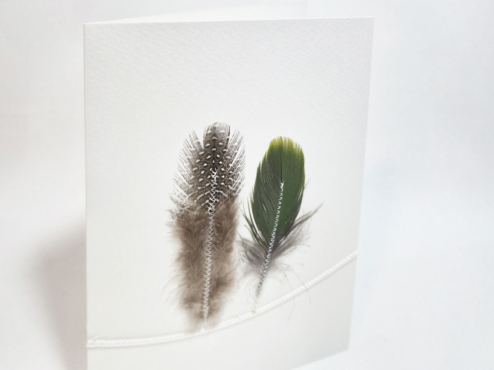 Eine aufwendige Karte mit echten Federn
